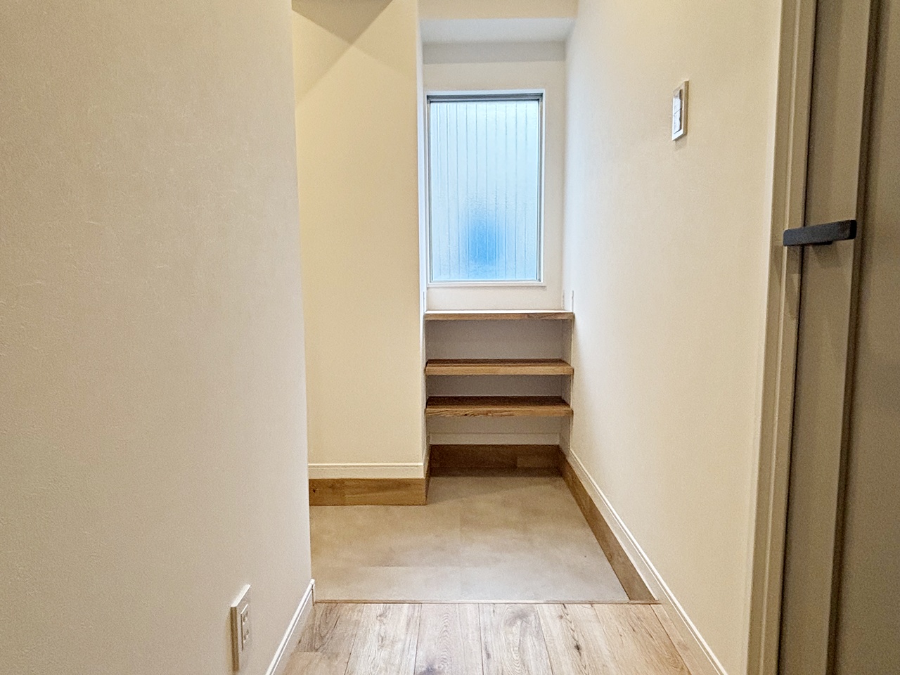 手狭だったお風呂は位置を移動し、窓付きの広くて快適になりました。玄関は廊下部分を一部土間スペースに広げゆとりのある玄関に生まれ変わりました。寝室にはWICを設置。おしゃれで快適な空間に生まれ変わりました。