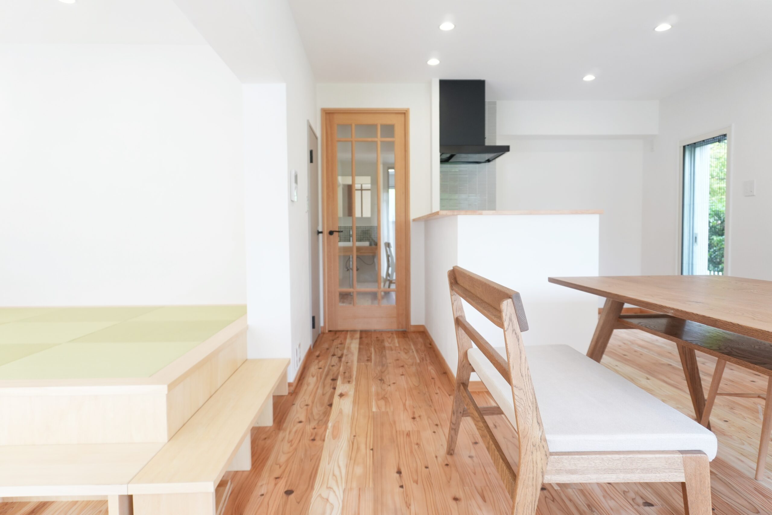 - 杉の香広がる小上がりのあるリビングでゆったりくつろぐ暮らし